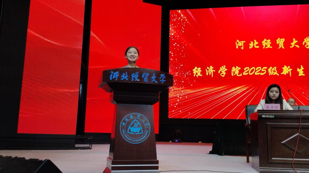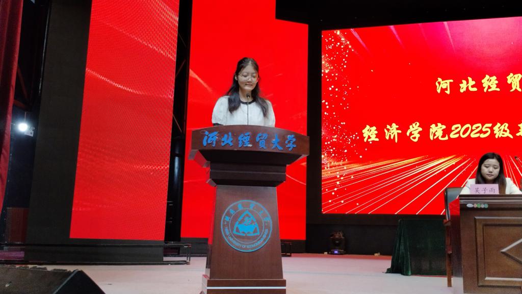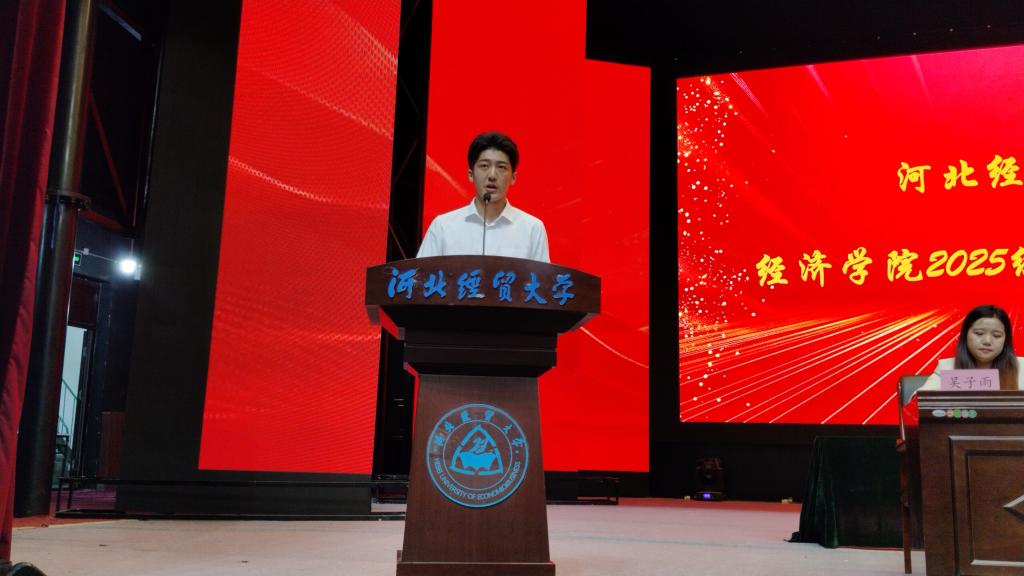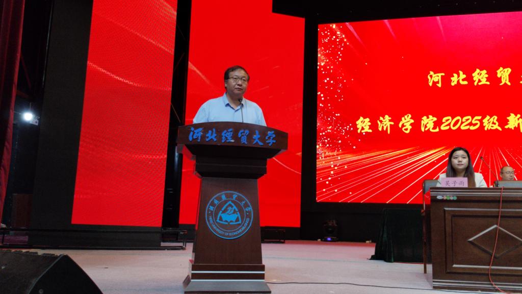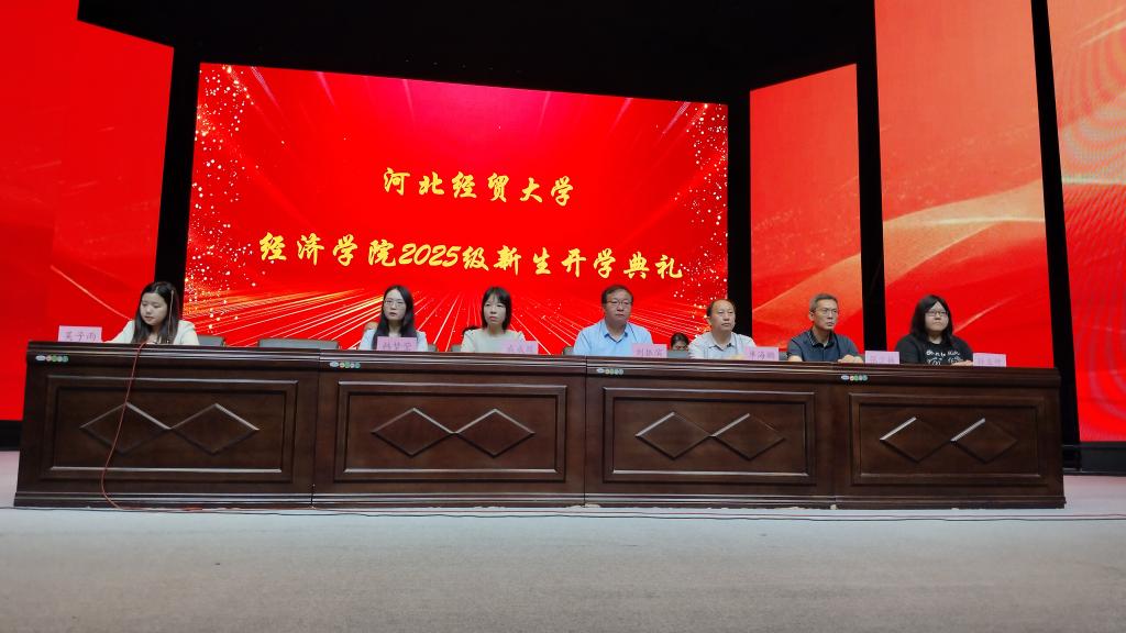 9月13日上午,河北经贸大学经济学院在校礼堂隆重举行2025级新生开学典礼。河北经贸大学经济学院党委书记刘振滨、副院长单海鹏、团委书记吴子雨、国际经济与贸易系主任张少楠、贸易经济系主任孙玉竹、经济系副主任戚成蹊、数字经济系副主任韩梦莹,2025级全体新生辅导员及全体新生齐聚现场,典礼由吴子雨主持。