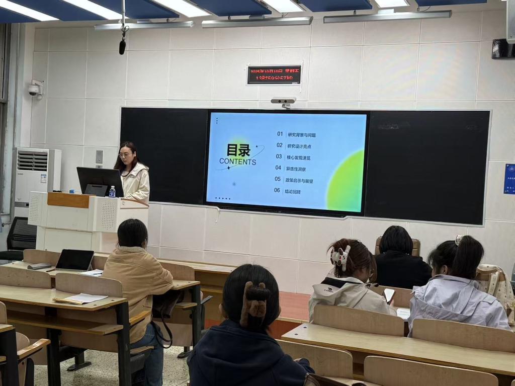 2025年10月10日下午两点,由经济学院主办的第三十一期学术沙龙在第三教学楼B105顺利举行。本次沙龙邀请高艳老师进行指导点评,由2024级理论经济学专业的张晨、刘婕、王楠三位同学进行分享,经济学院2024级和2025级研究生共同参与。