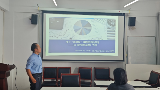 为深化“新财经”教育理念落地成效,推动课程教学改革与创新实践,9月29日,经济学院在第三办公楼中会议室组织开展“新财经”课程建设专题教学沙龙。本次沙龙由学院李伟老师主讲,围绕《数字化运营》课程建设展开深度研讨,学院多位教师参与交流互动。