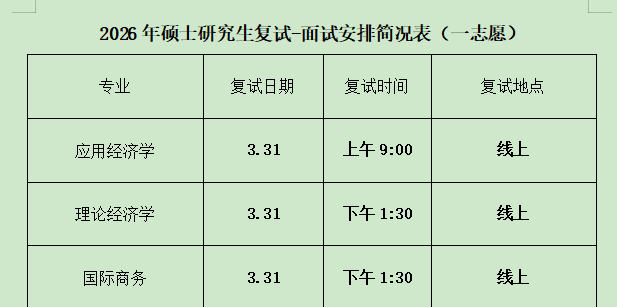 2026年硕士研究生复试-面试安排简况表(一志愿)